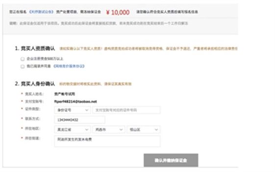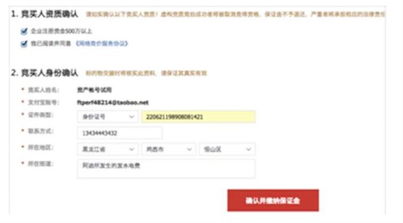 競(jìng)買(mǎi)人身份確認(rèn):根據(jù)要求輸入正確的信息;