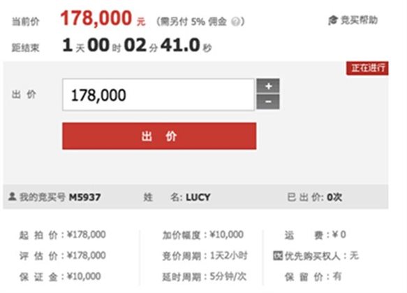同時(shí)自動(dòng)生成競(jìng)買(mǎi)號(hào)并跳轉(zhuǎn)到出價(jià)頁(yè)面。您可以在規(guī)定的時(shí)間進(jìn)行出價(jià)了