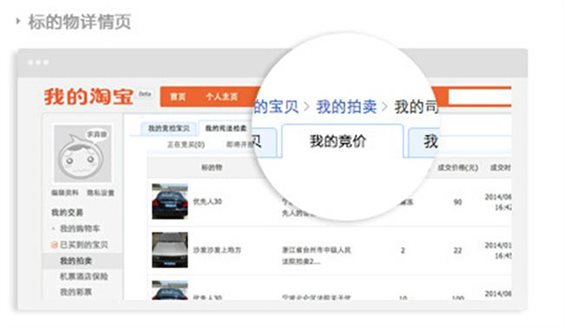 您可登陸淘寶網(wǎng)站,進(jìn)入【我的淘寶】頁(yè)面,點(diǎn)擊【我的拍賣(mài)】——查看所有您已報(bào)名并交納保證金的標(biāo)的物,并看到對(duì)應(yīng)標(biāo)的物的狀態(tài)。